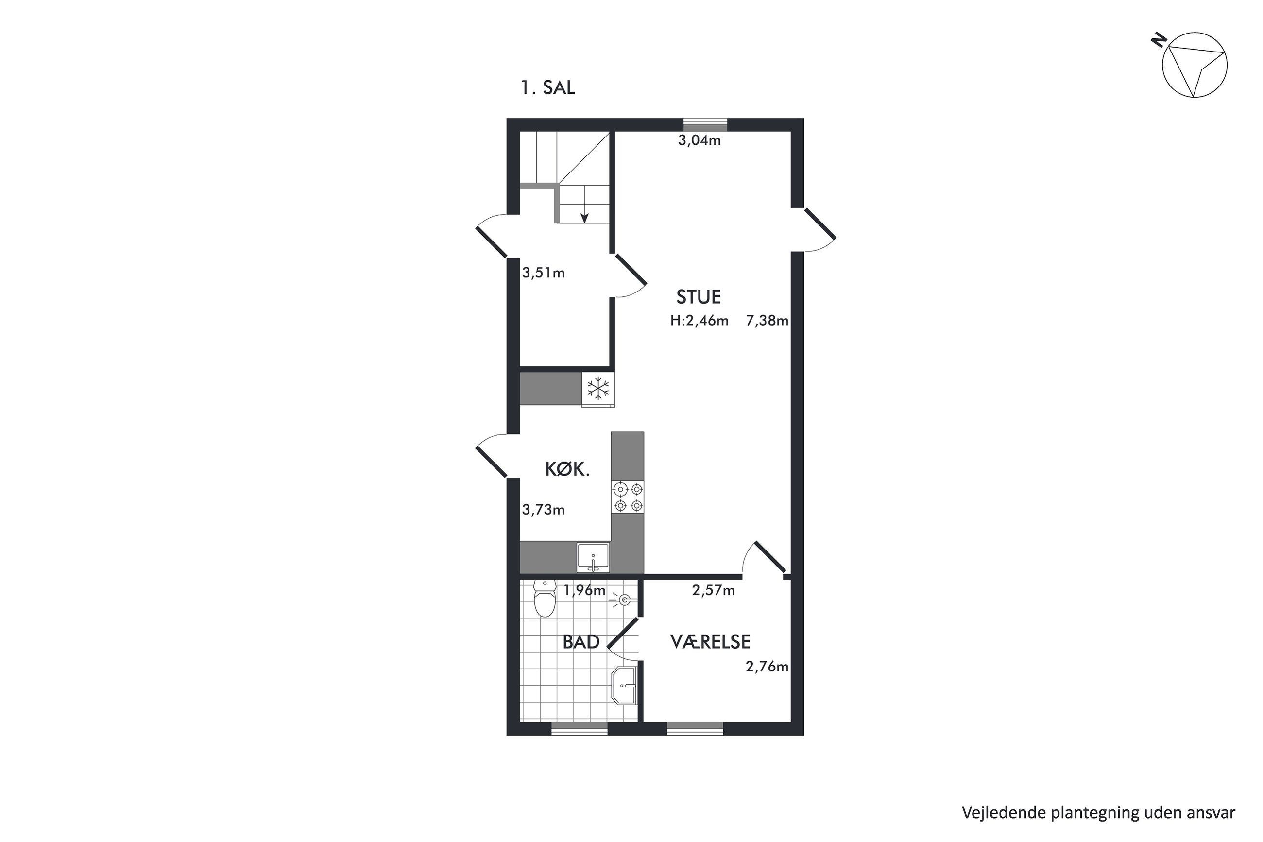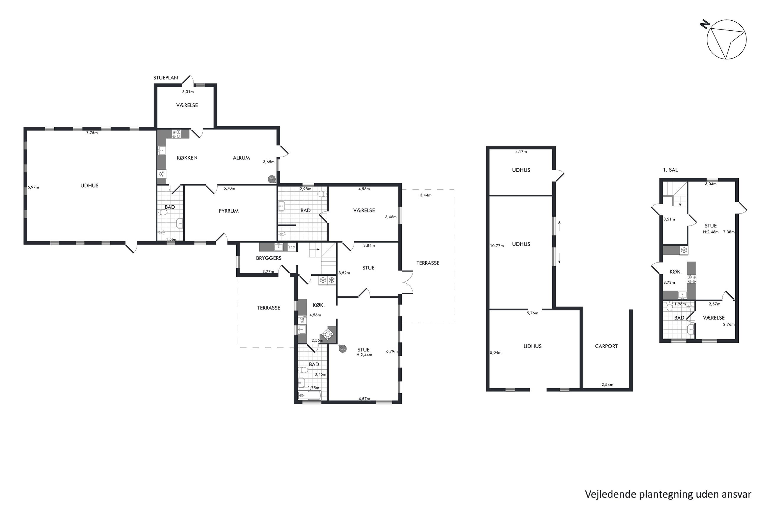 God plads får I også indenfor, hvor husets 130 m2 er fordelt således, at stueplan og 1. sal består af to selvstændige boliger. Ovenpå får I en dejlig stor stue i åben forbindelse til et pænt køkken, et værelse og et brusebadeværelse – perfekt til enten teenageren eller bedsteforældrene. Nedenunder venter endnu en velindrettet bolig, og her kan I virkelig samles rundt om aftensmåltiderne, til brætspilsaftener eller filmhygge i to skønne stuer en suite, hvor brændeovnen sætter den gode stemning. Dertil kommer et værelse, et bryggers samt to badeværelser.