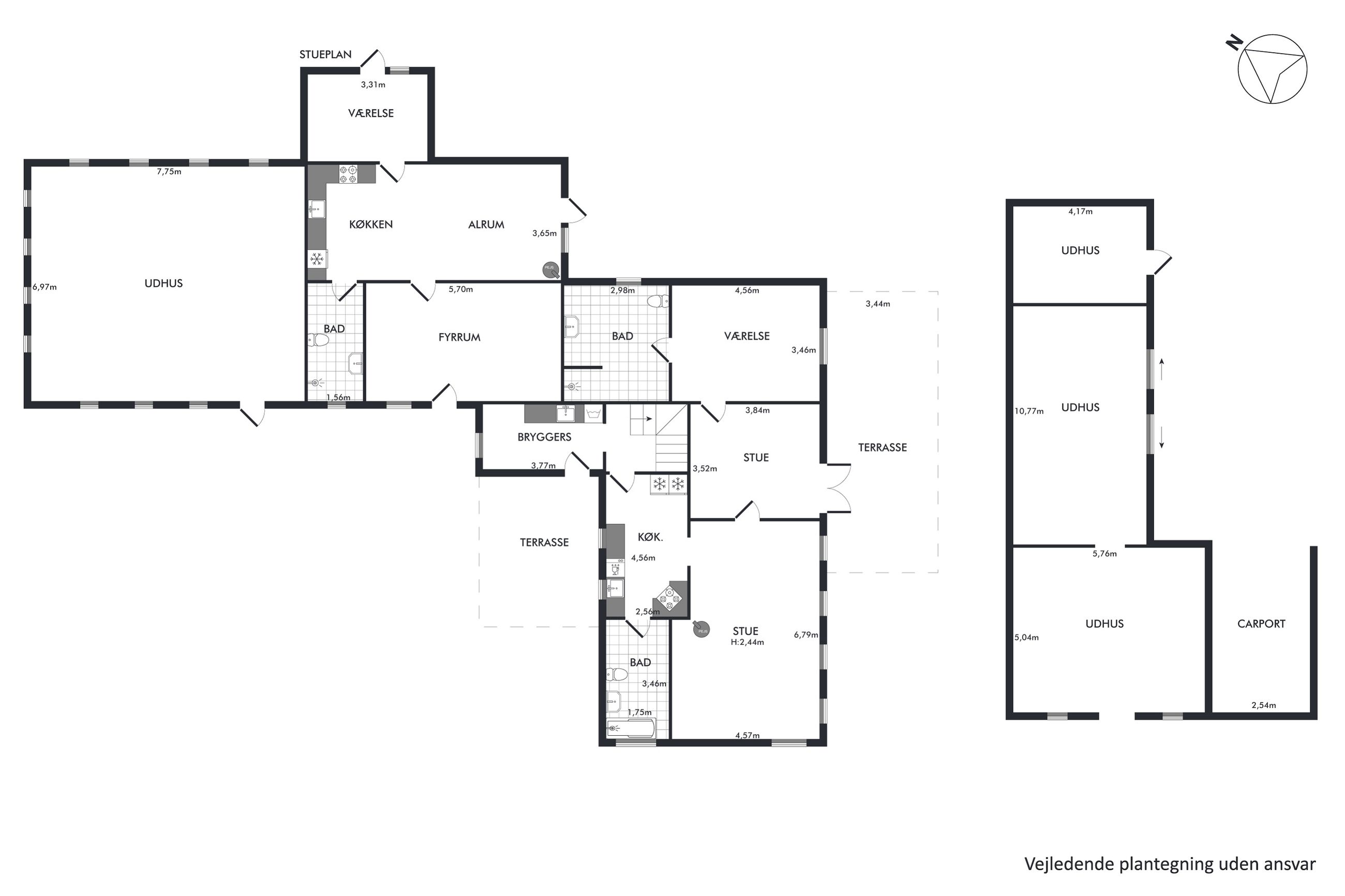 Der er endnu mere plads til forældre, gæster eller måske en voksen søskende i den ekstra afdeling, som sælger lod etablere i 2002. Adgangen sker via fyrrummet, hvor ejendommens pillefyr står, og herfra træder man ind i et indbydende opholdsområde. Her finder I et køkken-alrum, et soveværelse og et badeværelse – alle med behagelig gulvvarme, så der er lune fødder året rundt. Denne del er dog ikke godkendte boligkvadratmeter.