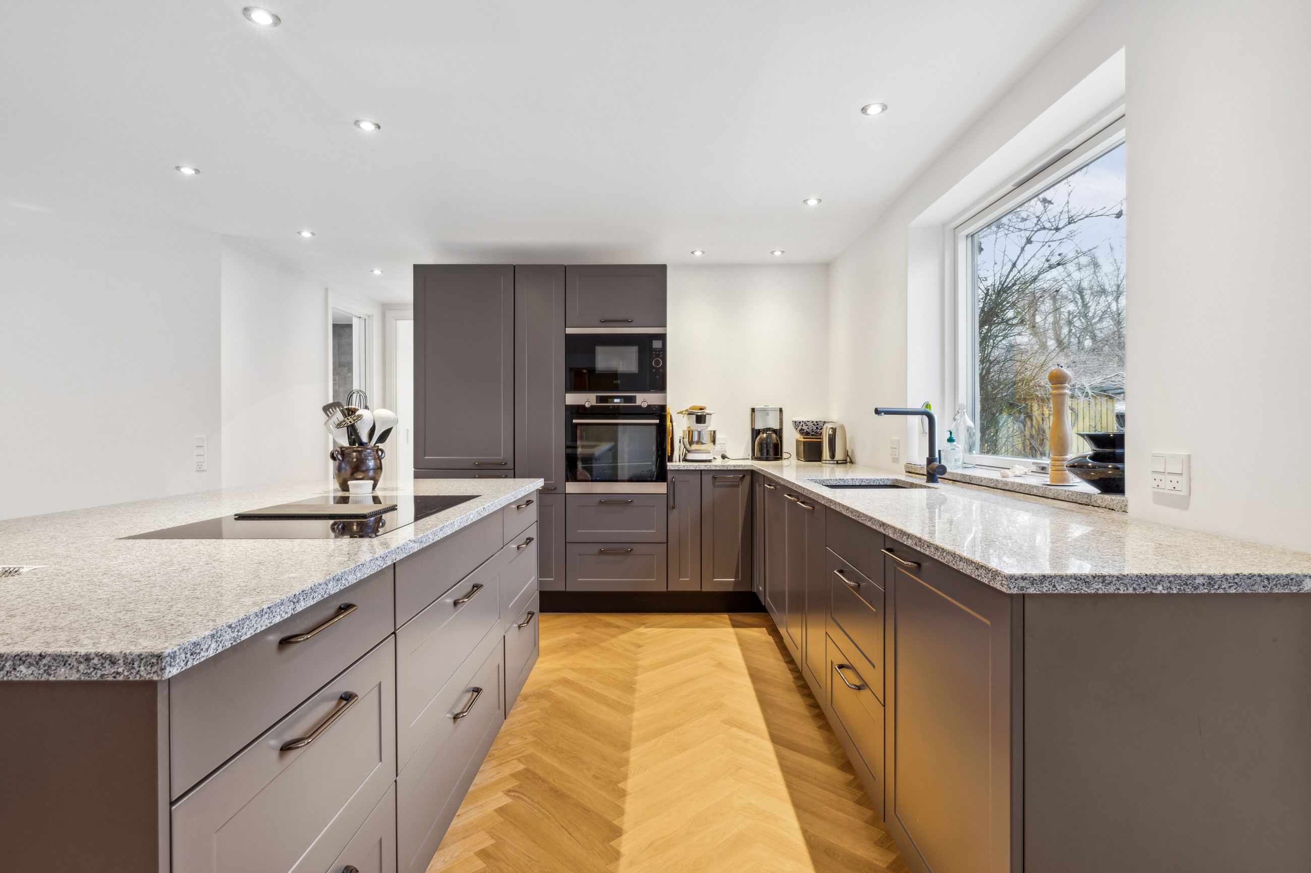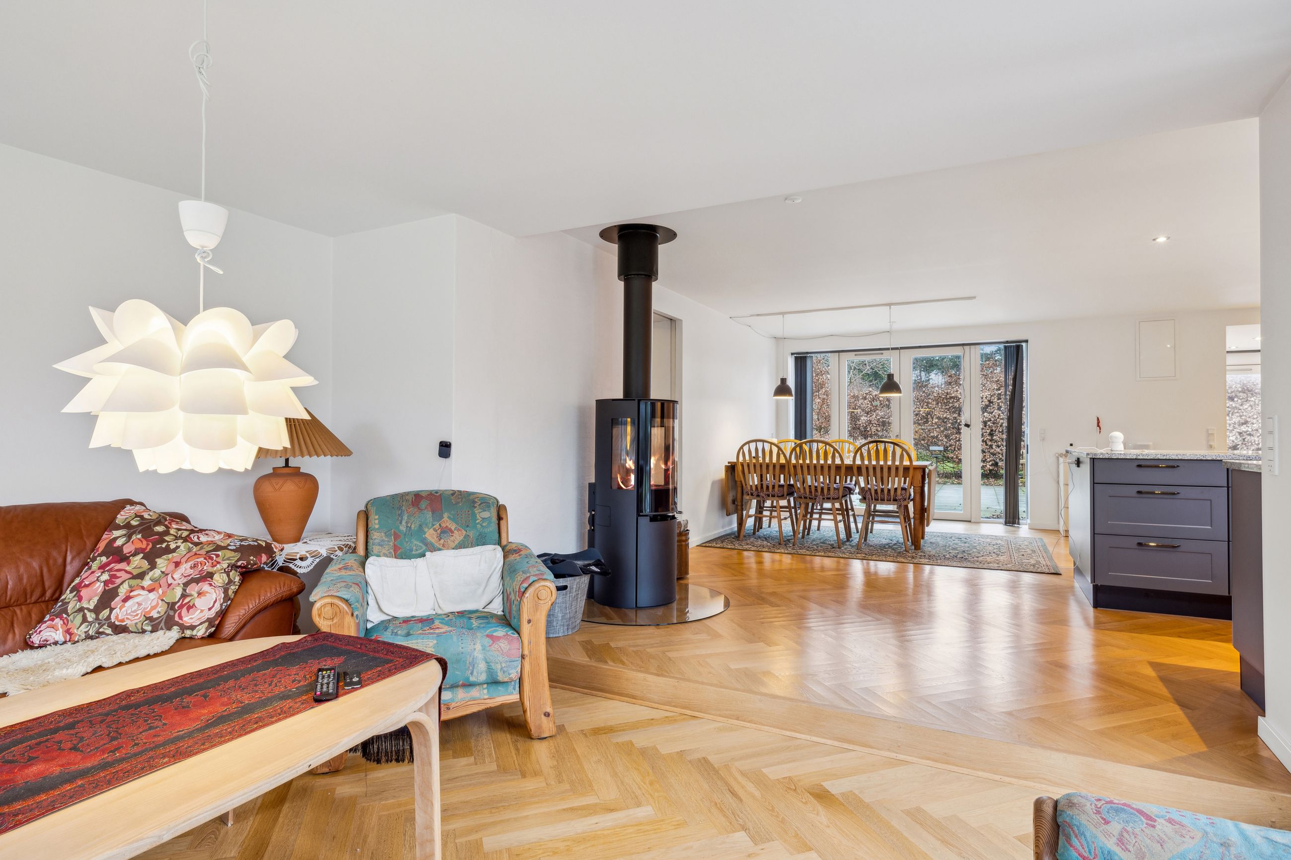 Videre indenfor fordeler 99 m2 sig, og dertil kommer et anvendelsesrigt udhus. I kommer til at bevæge jer rundt over elegante sildebensgulve i boligen, der gennemlyses af de brede vinduespartier, og hjemmet er i det hele taget gennemført, velholdt og helt klar til jeres næste ferie. Fra terrassen kan I træde ind i udestuen, der bliver til køkken-alrum og stue, og videre rundt fordeles et, to, tre hyggelige værelser samt to lækre brusebadeværelser. Det er dog leverummet, der virkelig gør huset særligt, for mens en lun brændeovn sætter den helt rigtige stemning an om aftenen, kan I om morgenen sætte dørene ud til på vidt gab og lade ude og inde smelte sammen. De lækre fornemmelser understreges i det store køkken, som er flot, moderne og kommer med opvaskemaskine, og faktisk er der gode faciliteter hele vejen igennem den gennemførte feriebolig gør det også oplagt at udleje.