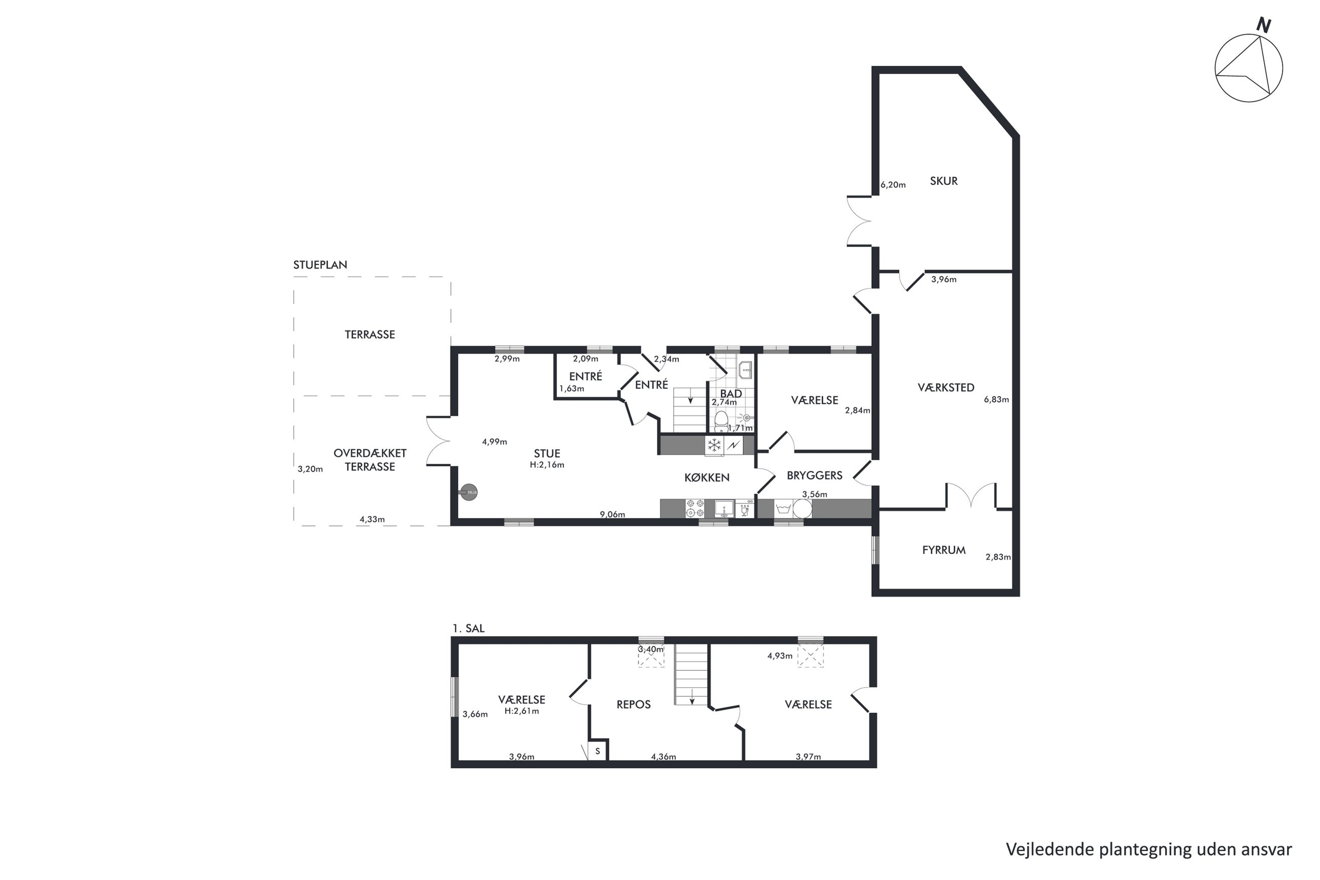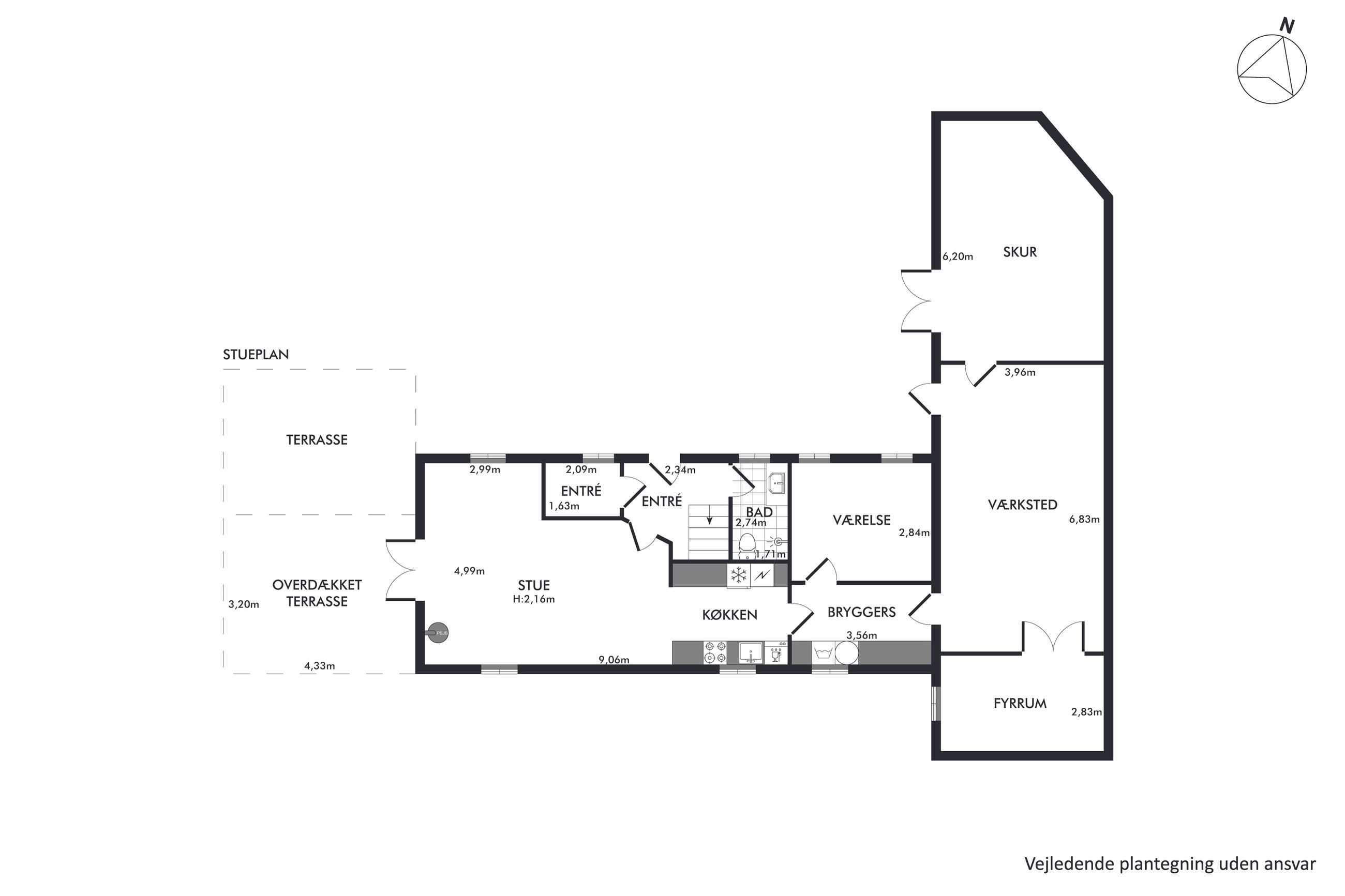 Når sommeren begynder, kan I jo tænde op for grillen, mens solens sene stråler vil lune, og solnedgangen male himlen rød. Udesæsonen varer endda særligt længe herhjemme – det sørger overdækningen på terrassen for! Praktik får I også fin plads til med såvel værksted som skur i gode størrelser, og herfra går turen inden døre, hvor I skal på tur på to fine etager